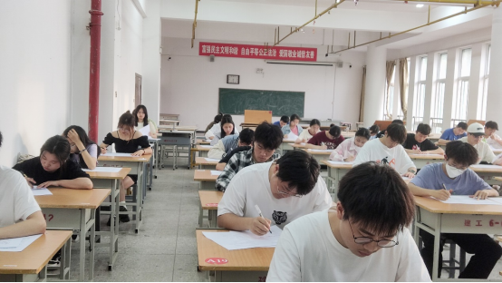 同学们进入考场后,监考员强调了此次推优考试的考场纪律,要求同学们严肃对待考试,诚信应考,按要求将手机上交至手机袋。在考试过程中,同学们严格遵守考场纪律,认真地完成自己的试卷。本次考试内容主要涵盖党的基本知识、二十大精神、党史学习教育等内容。考试现场,同学们沉着冷静,奋笔疾书,在规定时间完成本次考试,监考员严肃认真,公平公正。