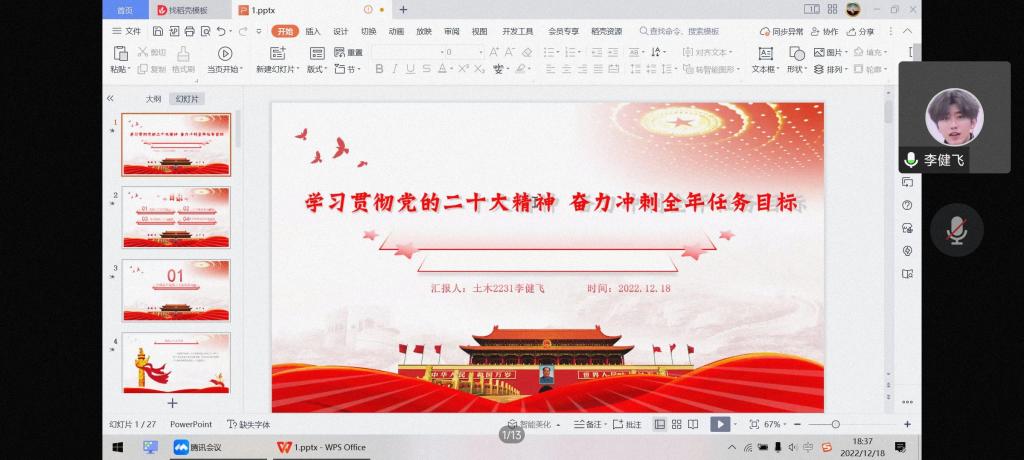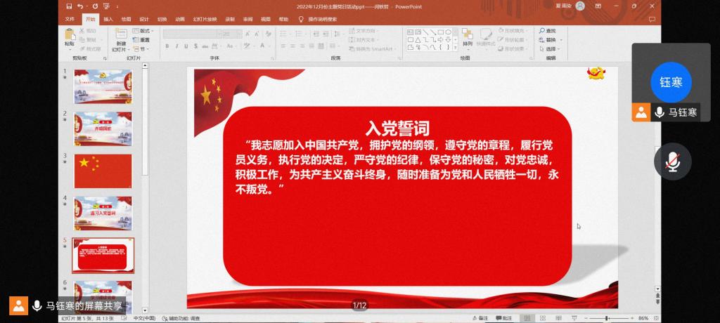 (通讯员 卿天锱)2022年12月18日下午6点30分,威尼斯432888cam全体党员线上开展了以“学习贯彻党的二十大精神,奋力冲刺全年目标任务”为主题的党日活动。
