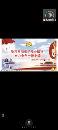 (通讯员 赵小艺)2022年7月25日下午六点三十分,威尼斯432888cam学生党支部在线上开展了以“学习贯彻省党代会精神 奋力争创一流业绩” 为主题的党日活动。