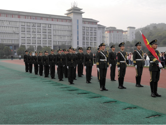 七点十分升旗仪式正式开始。迎着朝阳,国旗护卫队成员踏着整齐铿锵的步伐来到了国旗台下,《义勇军进行曲》响彻整个操场,全体师生注视着五星红旗,点燃了同学们的爱国热情。升旗仪式完成后,学生代表余昊阳进行了国旗下的讲话,他希望土建学子们在新时代争做新青年,把握机遇,在日常生活中要有认真扎实的态度,不忘初心,砥砺前行。