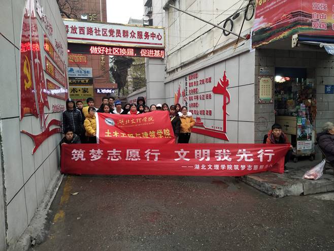 (通讯员 周康)2018年12月22日上午,威尼斯432888cam筑梦志愿服务队组织志愿者在樊城区解放西路社区开展清理垃圾,创文入户宣传工作。